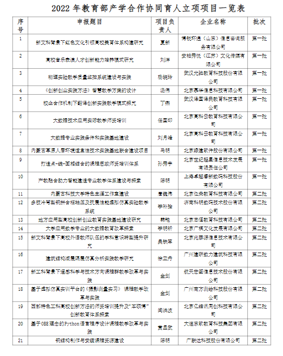 近日,教育部高等教育司发布了《教育部高等教育司关于公布2022年第二批产学合作协同育人项目立项名单的通知》,金沙990活动大厅11个项目获批立项。至此,金沙官网2022年产学合作协同育人项目立项数达21个,获批项目数达历史新高。2016年至今,学校共累计获批85项。