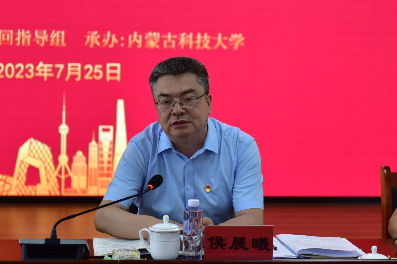 侯晨曦作总结讲话,他说,各高校严格按照中央和自治区主题教育领导小组办公室要求,规范创新、统筹推进,在理论学习跟进、调查研究开展、民生事项解决、学生就业推进、问题整改整治、铸牢中华民族共同体意识教育、主题教育助力高质量发展等方面均有序推进,成效明显。