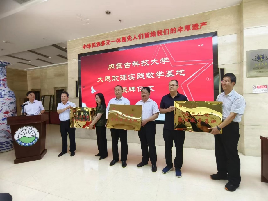 8月22日,金沙990活动大厅与土右旗“大思政课”实践教学基地授牌仪式在土右旗敕勒川博物馆举行。校党委副书记冯志强,统战部副部长王秀莉,马克思主义学院院长张光存、副书记副院长柴艳莎,土右旗旗委副书记张慧东,统战部副部长、民委主任王猛,土右旗敕勒川博物馆、文投公司、九峰山生态管委会等部门主要负责人和金沙官网教师代表共同参加授牌仪式。