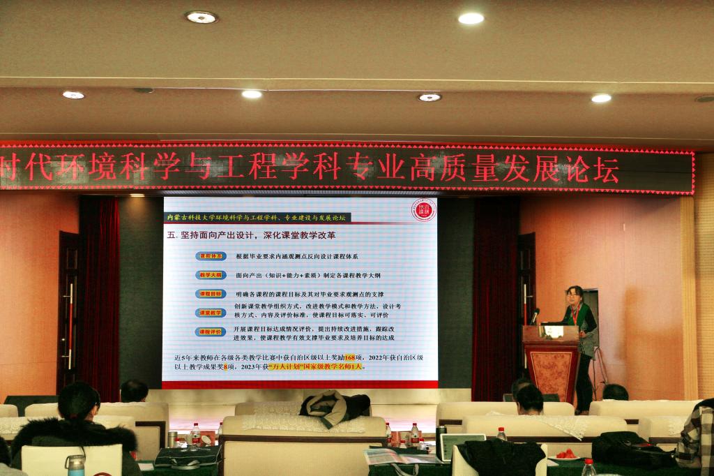 12月1日上午,“新时代环境科学与工程学科专业高质量发展”论坛在稀土国际大酒店举行,副校长屈忠义出席并致辞。来自北京师范大学、北京科技大学、华北电力大学、宁夏大学、内蒙古大学、西安建筑科技大学、上海第二工业大学、太原科技大学、内蒙古工业大学、金沙990活动大厅等高校的近百位专家学者、师生代表参加了论坛。