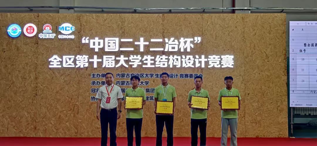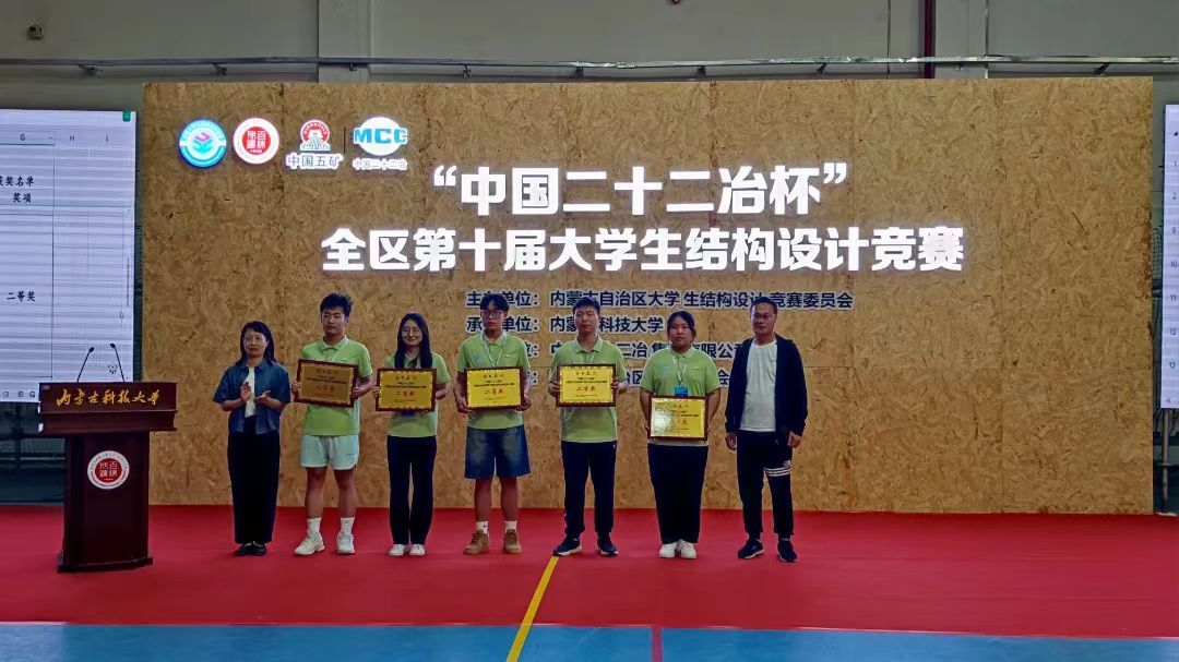 6月21日至23日,由内蒙古自治区大学生结构设计竞赛委员会主办、金沙990活动大厅承办,中国二十二冶集团有限公司冠名的“中国二十二冶杯”内蒙古自治区第十届大学生结构设计竞赛在校举行。本届共有来自内蒙古大学、内蒙古工业大学等8所高校的25支代表队参赛。金沙官网四支代表队发挥出色,分获四个一等奖中的前三名以及一个二等奖。金沙官网金鹰战队以及内蒙古建筑职业技术学院代表队将代表自治区前往广州大学参加国赛。