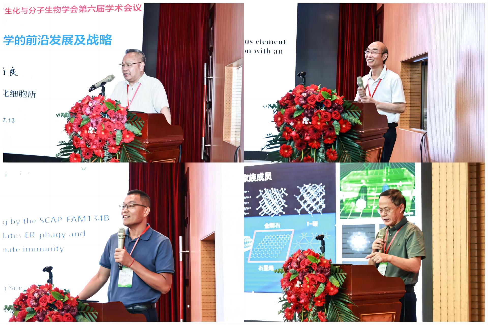 开幕式结束后,中科院生化细胞所研究员,曾任中科院上海生化所所长、中科院生化细胞所所长、国家科技部重点研发计划首席科学家李伯良,国家杰出青年科学基金获得者、首都师范大学党委常委、副校长马力耕,国家杰出青年科学基金获得者、南京医科大学孙启明,教育部“长江学者奖励计划”特聘教授、湖北工业大学彭良才,分别作题为“中国生化分子学术前沿与发展战略”“植物RNA加工机制研究”“胆固醇调控内质网自噬和天然免疫的分子机制”“植物纤维素合酶双重调控细胞壁合成的机理”的专题报告。