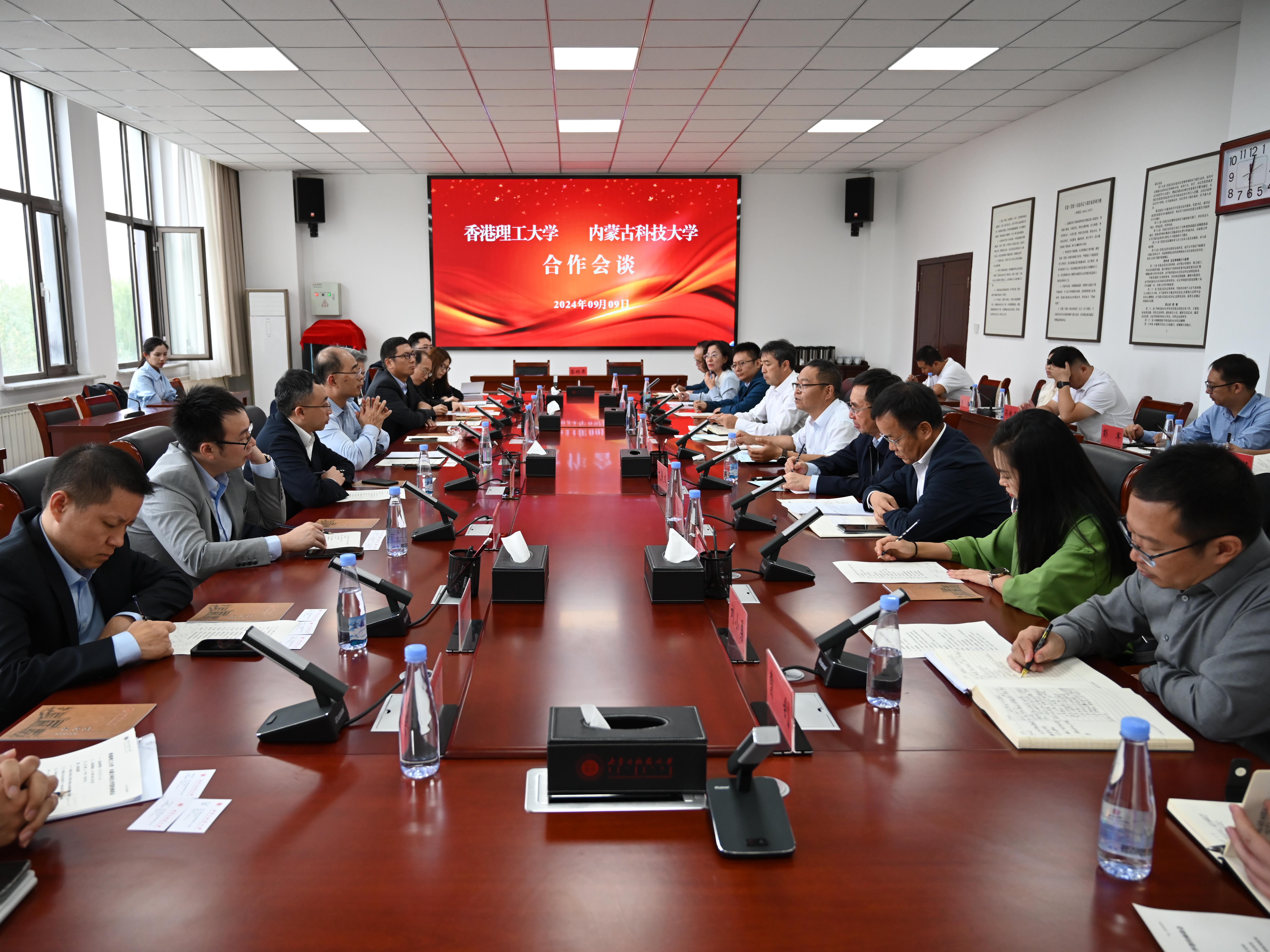 呼和对香港理工大学黄永德一行的来访表示热烈欢迎。他说,希望在科学研究、基地共建、人才培养、文化交流等方面开展务实合作。双方共建研究中心及协同创新中心,聚焦前沿科技,促进科研成果转化;依托包头市厚重的产业基础,深化产学研用合作模式,推动科技成果与产业需求的紧密结合;探讨合作办学新路径,培养具有国际竞争力的复合型人才;共同挖掘和传承北疆文化的独特魅力,增进两校师生之间的友谊与理解,推动中华文化的传承与创新。