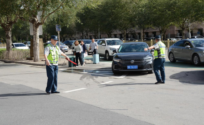 党委保卫工作部以两个校区校门及周边区域为重点,提前设计交通疏导路线,共安排15名保卫干部、110名安保人员在校园执勤,克服阴雨天气的不利影响,引导接送新生车辆有序行驶,有效解决了校园及周边交通拥堵问题,确保新生报到期间良好秩序。累计完成7500余辆校外机动车、20000余人次的入校及1000余人次的服务指引工作。