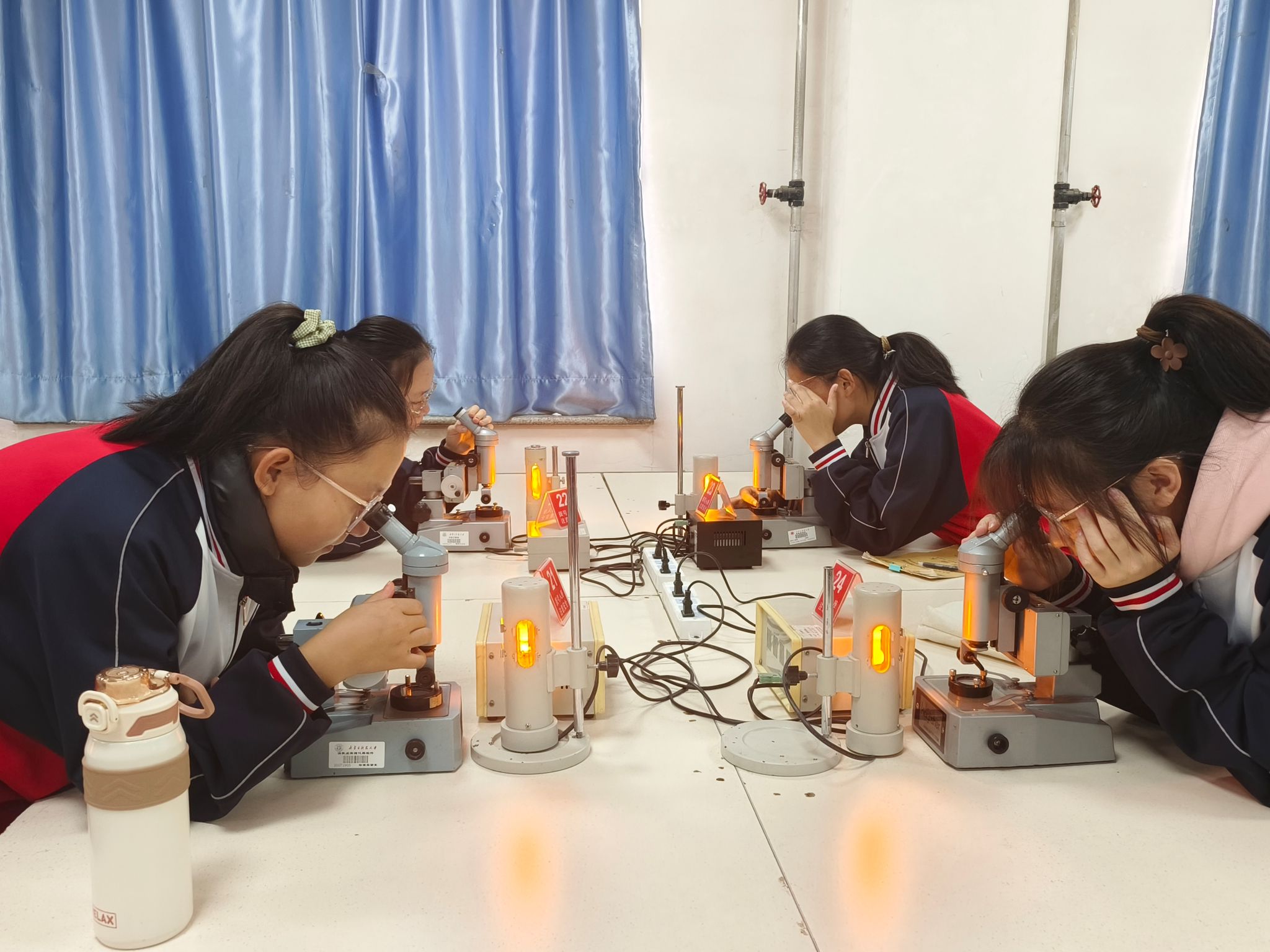 在秋实楼理学院物理实验中心,理学院师生为中学生们进行了实验讲解和演示,展示了静电感应、蛇形摆、无弦琴、无皮鼓等20余个有趣的实验。同时,为学生带来了科普小讲座,讲解迈克尔干涉仪实验原理,并教会他们用实验仪器进行实操。现场中学生被丰富的科学知识所吸引,频频举手互动,并与现场科普志愿者深入交流。