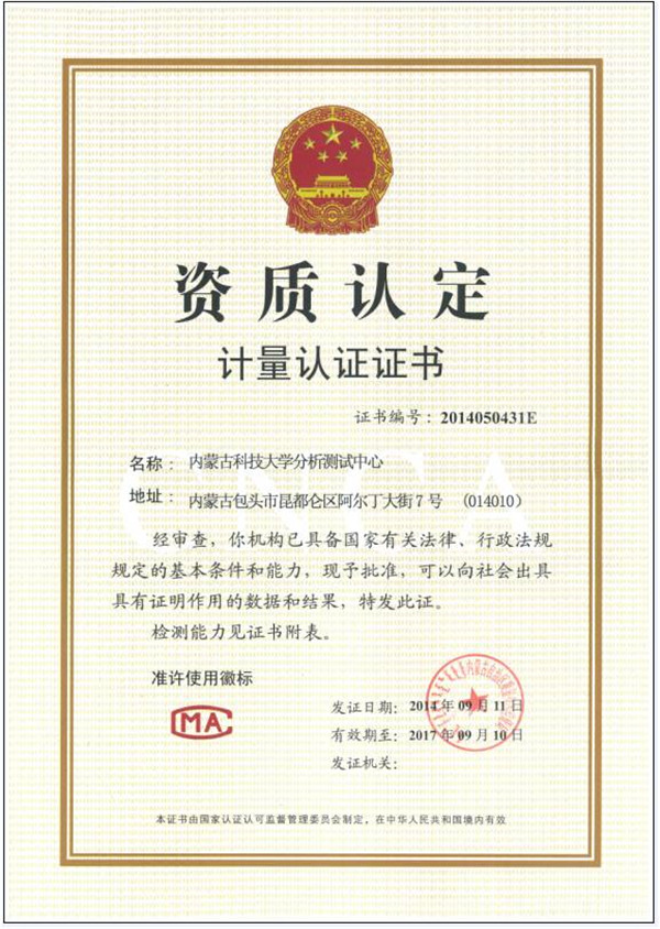省级计量认证资质认定评审的通过,为金沙官网分析测试中心检测数据的科学性、公正性、合法性提供了法律依据,同时也标志着我中心的质量管理水平跃上了一个新的台阶,为社会提供特色的、优质的、一流的技术服务。