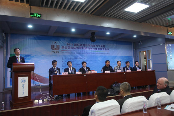 11月1日,由中国大学生体育协会田径分会主办,湖南大学承办的“2014国际体育科学与技术大会暨第三届国际体育科学与学校体育学术会议”在湖南大学国际教育学院报告厅举行。