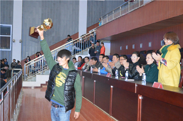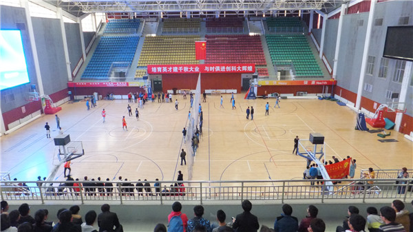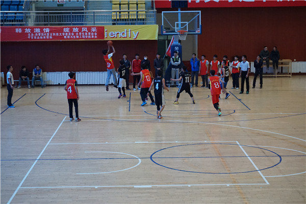 11月14日中午,由校团委主办、数理生学院与体育部承办的金沙官网第五届新生男子篮球赛决赛暨闭幕式在体育馆召开,进入决赛的四支参赛队及相关学院负责人、各学院啦啦队到会参赛并观战。