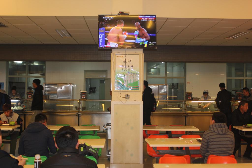 为进一步改善餐厅环境,丰富师生就餐生活,让师生享受美味饭菜的同时,可以了解到更多的新闻时事、体育赛事和娱乐动态等信息,中心统一为学生餐厅安装了50英寸的等离子电视机,让每一位就餐的师生员工能够感受到家的温馨。牢牢把握服务理念,完善发展服务内涵,让师生员工放心满意是中心发展的永恒主题。