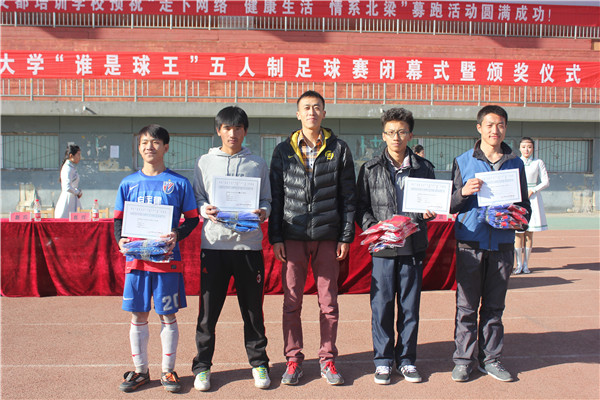 11月23日,金沙官网“谁是球王”五人制足球赛落下帷幕。校团委、体育教学部相关负责人及各参赛球队参加闭幕式。