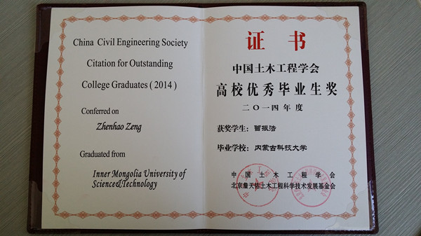 日前,2014年中国土木工程学会高校优秀毕业生奖评选结果揭晓,金沙官网建工学院工程管理专业2010级本科生曾振浩同学当选。11月22日,第七届工程管理院长(系主任)会议在深圳大学召开并现场颁奖。