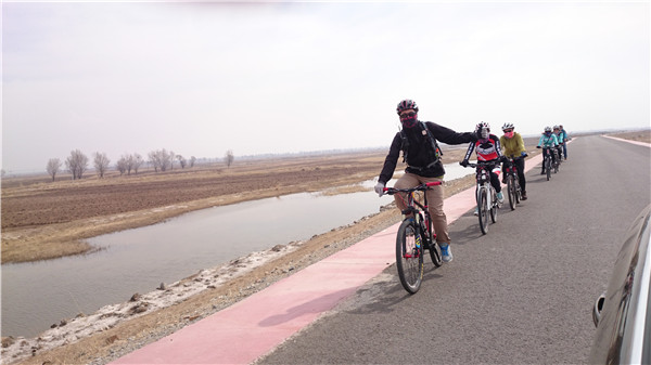 比赛骑行路线为从金沙官网出发,经麻池村至黄河景观大道,到达比赛起点,小白河湿地保护区斜拉桥广场,全程近20公里。随着发令枪响,队员们一个个如离弦之箭般的冲了出去,骑行至昭君岛处折返,全程60余公里,最后返回起点。活动结束后,骑行队伍经麻池村返回学校,骑行距离为100公里。