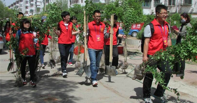 5月9日,金沙官网青年志愿者协会参加阿尔丁10号街坊一社区植树绿化活动。