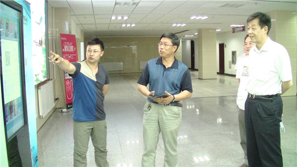 图书馆负责人就图书馆新馆、老馆布局,重点学科阅览室、图书馆电子阅览室等进行了介绍。期间,技术部馆员对自助借还书机、电子读报机、歌德电子书借阅机等图书馆电子设备进行了现场演示。