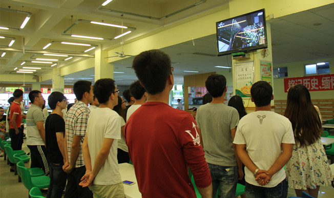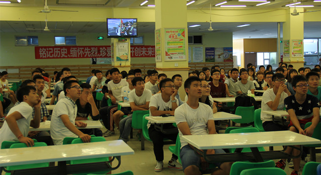 9月3日,为纪念中国人民抗日战争暨世界反法西斯战争胜利70周年,激励全校学生铭记历史、缅怀先烈、珍爱和平、开创未来,金沙官网学生积极响应学校的号召,自发聚集在活动中心广场、第二教学楼广场LED屏幕、梅园餐厅,和园餐厅和颐园餐厅等地观看本次纪念大会的现场直播。