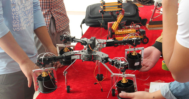 本次科技创新成果展参展作品包括在RoboMasters2015全国大学生机器人大赛获全国三等奖作品机器人、跳舞机器人、擂台机器人等各类电子信息科技作品;光伏光热发电积水装置、四轴飞行器、汽车尾气温差发电装置等各类机械科技作品;桥梁模型、吊脚楼模型、承重桥等各类土木建筑科技作品。参展作品受到学生们的一致好评,也为众多科技创新爱好者提供了创新的源泉。