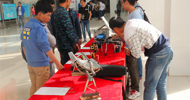 9月24日下午,由校团委主办,信息学院、机械学院、建工程学院联合承办的“金沙990活动大厅2015年学生科技创新成果展”在逸夫楼一楼大厅开展。