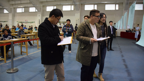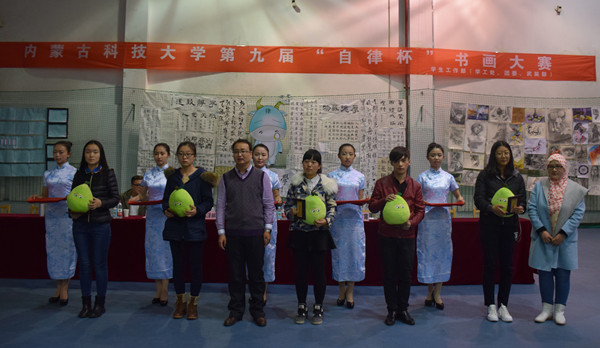 11月14日上午,由校学工部主办,大学生自律委员会承办的主题为“笔走乾坤恢弘气,墨染科大金秋时”的第九届“自律杯”书画大赛在体育馆地下网球场举办。学工部、学报编辑部、艺术与设计学院相关负责人担任评委。