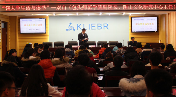 双山教授从“我的大学”、“读大学的意义”、“导师制的作用”、“读书的意义”及“校园文化的重要性”等五方面向同学们介绍了大学的生活以及读书的重要性。讲座其间,双山教授结合自己的切身体验和感受,讲述了他喜欢读书的原因和读书的技巧,并且还向同学们推荐了几个他喜欢的中外作家。讲座结束后,学生现场提出自己的疑问,双山教授耐心解惑。