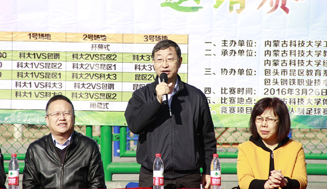 校工会主席裴承志致开幕词。他指出,本次足球邀请赛旨在提高教职工身体素质,增强校园足球文化氛围,促进五人制足球运动的普及,增进金沙官网教职工与昆区教育系统、包钢职业技术学院教职工之间的友谊。