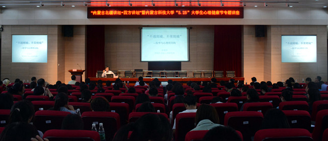 5月12日,“‘内蒙古北疆讲坛·四方讲坛’暨金沙官网5.25大学生心理健康节专题讲座”在校图书馆讲座厅举办。