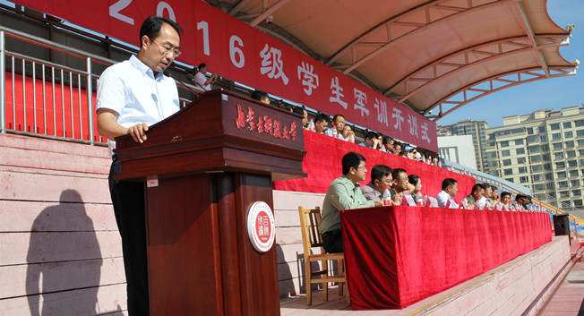 吕晓琪做军训动员。他指出,大学生军事训练已成为我国国防和军队建设培养大批高素质后备人才的有效举措,加强国防教育、增强大学生国防观念已成为当代青年学子的必修课。