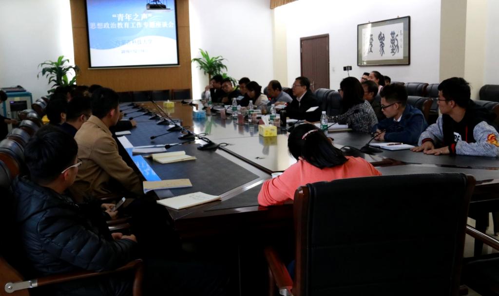 学生代表分别从学习生活现状、学习环境、专业知识技能与思想政治教育的关系、与班主任和辅导员的联系与沟通、新媒体与传统宣传模式的建设、如何更好地加强班级凝聚力、学生就业、学生喜闻乐见的开展思想政治教育工作的方式等方面中遇到的各种问题和与会领导展开交流。