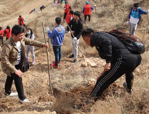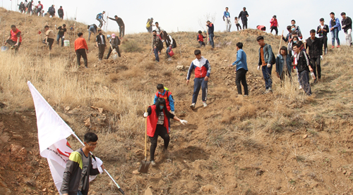 4月15日上午,金沙官网第九期青马班全体学员参加了由包头义工组织的在大青山庚毗沟举办的植树活动。