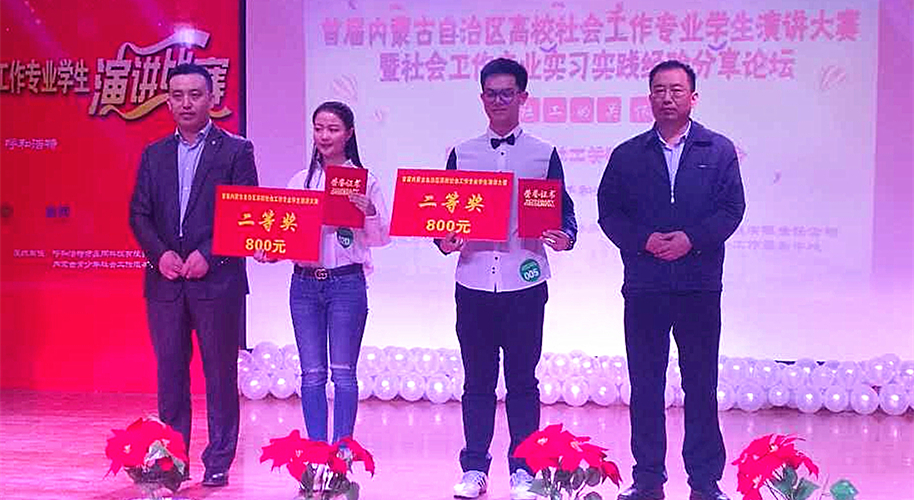 5月13日上午,“首届内蒙古自治区高校社会工作专业学生演讲大赛暨社会工作专业实习实践经验分享论坛”在内蒙古师范大学青年政治学院举办。金沙官网文法学院社会工作专业2015级学生彭嘉萌的演讲《我不是医生,却仍旧承接生死,护航人生》获得一等奖。2014级社会工作专业学生赵鑫鑫的演讲《社工关怀,你我同在》获得二等奖。