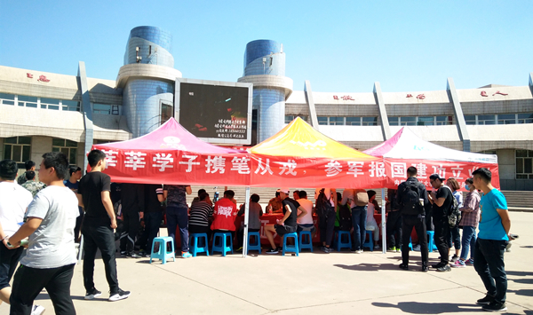 3月初开学起,金沙官网采用宣传橱窗、悬挂横幅与微信、微博、QQ群等新媒体平台相结合的方式,持续开展了广泛的征兵宣传,取得了良好效果。目前,金沙官网征兵工作仍在紧张有序地开展中。