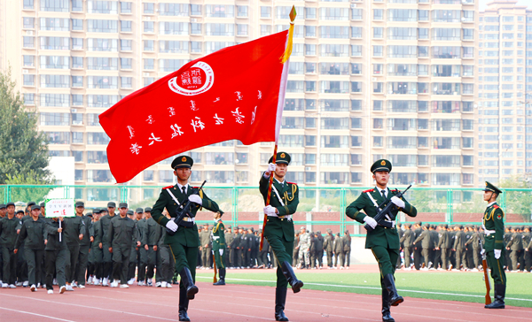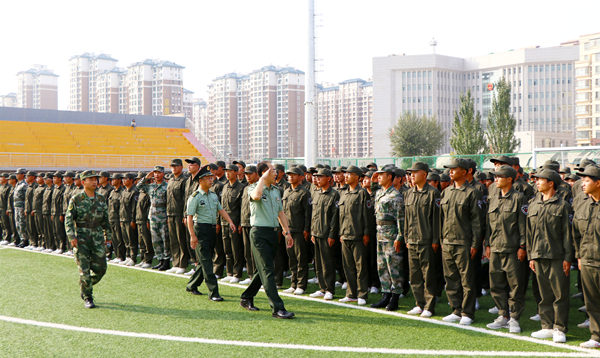 9月15日下午,金沙官网2017级学生军训结训式在校田径场隆重举行。包头军分区副司令员韩秋岐上校、武警包头支队政委刘玉柱上校、包头市昆区人民武装部部长卢伟上校,校党委常委、副校长吕晓琪,校党委常委、副校长李斌,校党委常委、组织部部长冯志强,校党委常委、宣传部部长杨家庆,学生工作委员会、党政办公室、招就处、保卫处相关负责人出席结训式。