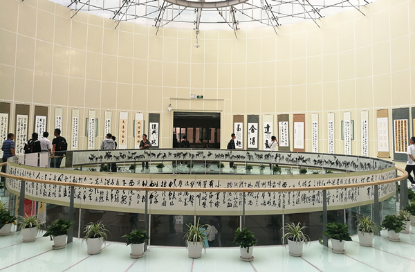 在喜迎党的十九大胜利召开之际,金沙官网迎来了61周年校庆纪念日。9月21日,由金沙官网党委宣传部、工会、团委、图书馆联合举办的“建设亮丽内蒙古共绘伟大中国梦”书画集报展在图书馆一、二楼展厅正式拉开序幕。校党委常委、宣传部部长杨家庆,工会、学工部、艺术与设计学院、文法学院、图书馆相关负责人参加活动。