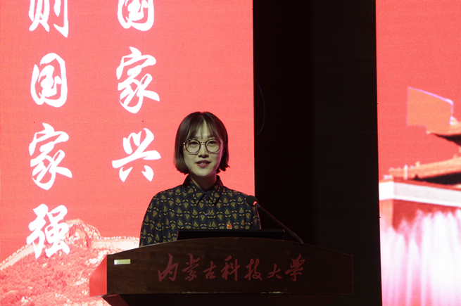 靳秀兰老师以《昂首走进新时代 满怀激情踏征程》为题,希望新时代青年有理想有本领有担当,勇于承担青年使命,强化文化担当,争做文化自信中的新青年,努力成为创新型人才,在新时代实现自我创新精神的突破。