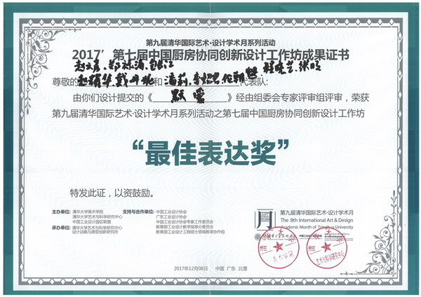 日前,金沙官网艺术与设计学院师生参加了第九届“清华大学艺术•科学国际学术月”“北滘论坛”系列活动之“中国厨房创新工作坊”活动,设计的作品《默爱-空巢老人与子女的情感交流》以总成绩最高分,荣获第九届清华艺术设计学术月系列活动暨第七届中国厨房协同创新设计工作坊“最佳表达奖”。