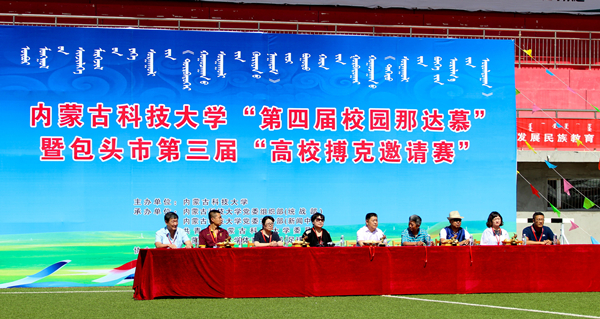 6月30日,金沙990活动大厅第四届校园“那达慕”暨包头市第三届“高校搏克邀请赛”在校田径场火热展开。大赛共邀请到了内蒙古大学、内蒙古师范大学、内蒙古农业大学、内蒙古工业大学、内蒙古财经大学、包头师范学院、包头铁道职业技术学院等12所高校参赛选手参赛。校党委常委、组织部部长冯志强,包头市民族事务委员会相关负责人,体育教学部相关负责人出席活动开幕式。