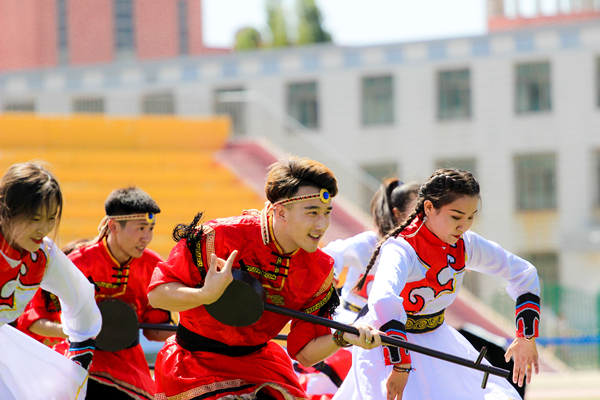 田径场上,强壮结实的蒙古族青年身着民族服饰,架着臂膊进行着力的较量,晶莹的汗水流淌在麦色的皮肤上闪着动人的光芒。相比于竞赛项目,娱乐项目则更加丰富多彩,蒙古象棋、嘎拉哈、布鲁、投壶等项目使现场一片欢声笑语。