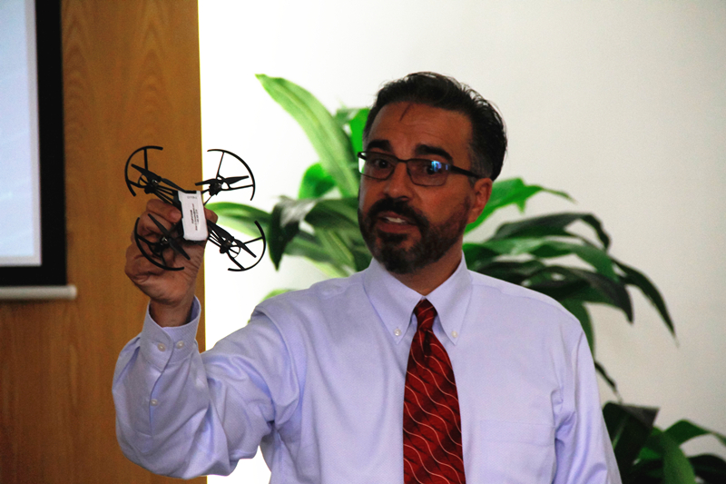布莱恩·冈萨雷斯表示,英特尔人工智能创新创业项目是一个区域级、世界级的项目。他坚信,在各方的努力和积极推动下,可以共同携手推动英特尔“创客大爆炸”的人工智能新时代。随后,布莱恩·冈萨雷斯作了题为《教育——影响第四次工业革命进程的核心》演讲,对全球竞争格局进行了深入剖析,详细阐述了英特尔教育及工业4.0、技能4.0、教育套件4.0、学习空间4.0等相关内容,并现场展示和介绍人工智能无人机及研发过程。
