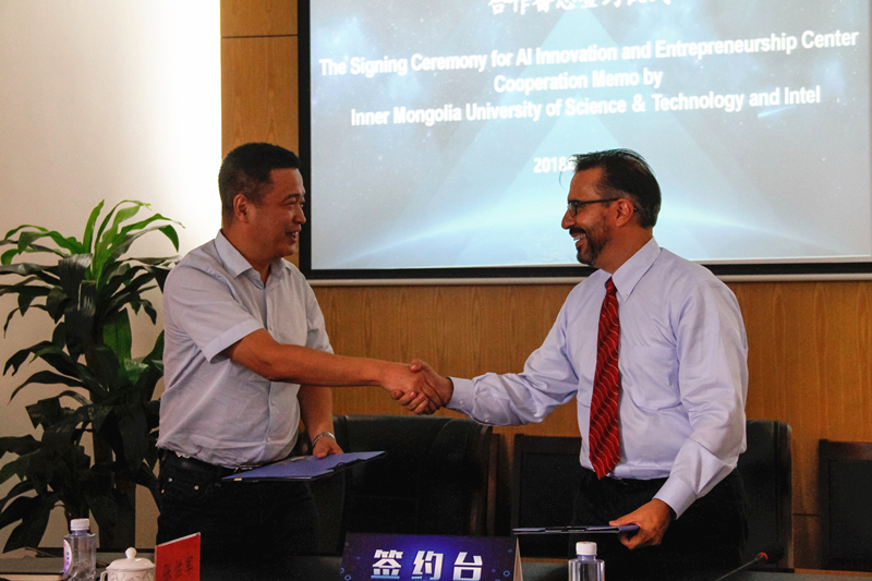 7月5日下午,自治区首家英特尔人工智能创新创业中心落户金沙990活动大厅。英特尔公司代表全球教育总经理布莱恩·冈萨雷斯与校方代表校党委常委、副校长任慧平签订《合作备忘录》。