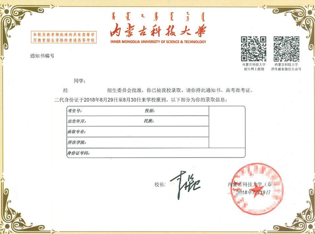 录取通知书内页