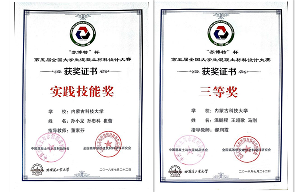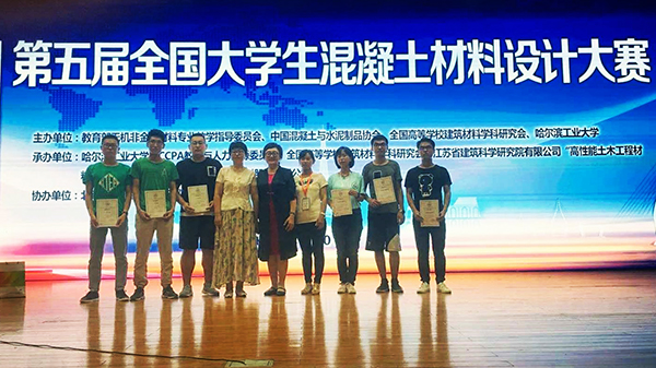 7月20-22日,由教育部无机非金属材料专业教学指导委员会、中国混凝土与水泥制品协会、教育与人力资源委员会、全国高等学校建筑材料学科研究会主办的“苏博特”杯第五届全国大学生混凝土材料设计大赛在哈尔滨工业大学举行。金沙990活动大厅土木工程学院杭美艳教授、郝润霞副教授、董素芬老师带领的2支参赛队伍成绩优异。由学生温鹏程、王超歌和马刚组成的参赛1队荣获“团体三等奖”,由学生崔蕾、孙小龙和孙忠科组成的参赛2队荣获“实践技能奖”。