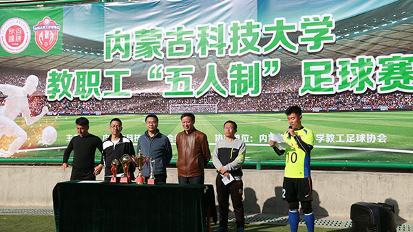 本次足球比赛由校工会主办,艺术与设计学院分会、材料与冶金学院分会、教工足球协会承办,共有来自各学院、机关各职能处室组成的8支队伍,100多名教职工参加,经过5天16场比赛的激烈角逐,最终机关图书馆联队获得冠军,材冶工训联队获得亚军,信息工程学院获得季军,机械工程学院获得本次比赛的精神文明奖。机关图书馆代表队的聂振东获得最佳射手奖,郝天、张博文获得优秀裁判员奖。