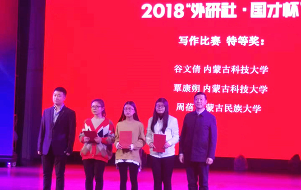 在本次大赛中,金沙990活动大厅参赛选手谷文倩和覃康朔分别荣获写作组特等奖冠亚军。贺田田和刘涛同时荣获阅读组二等奖。李博和茹果分别荣获演讲组二等奖和三等奖。谷文倩和茹果作为复赛特等奖选手将于2018年12月初代表内蒙古自治区赴北京参加“外研社•国才杯”全国大学生英语挑战赛总决赛。
