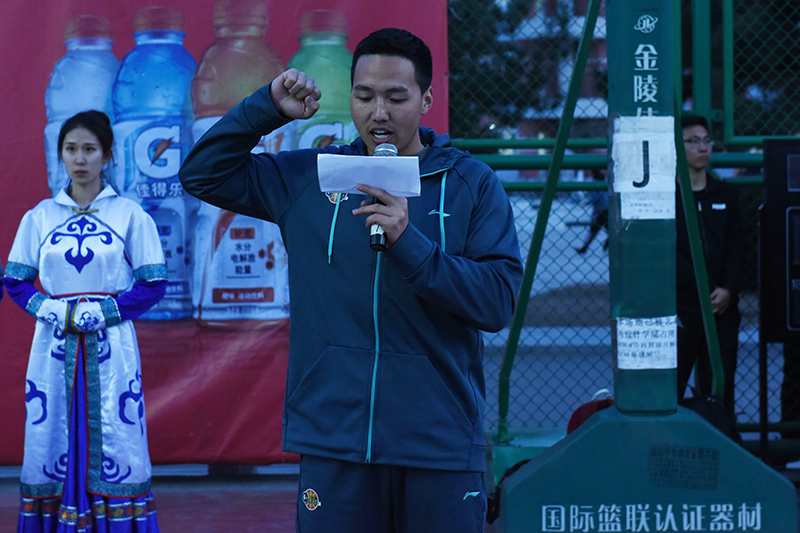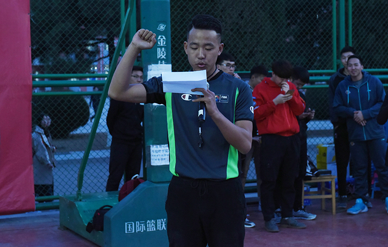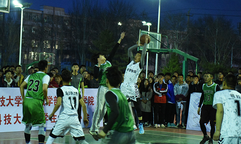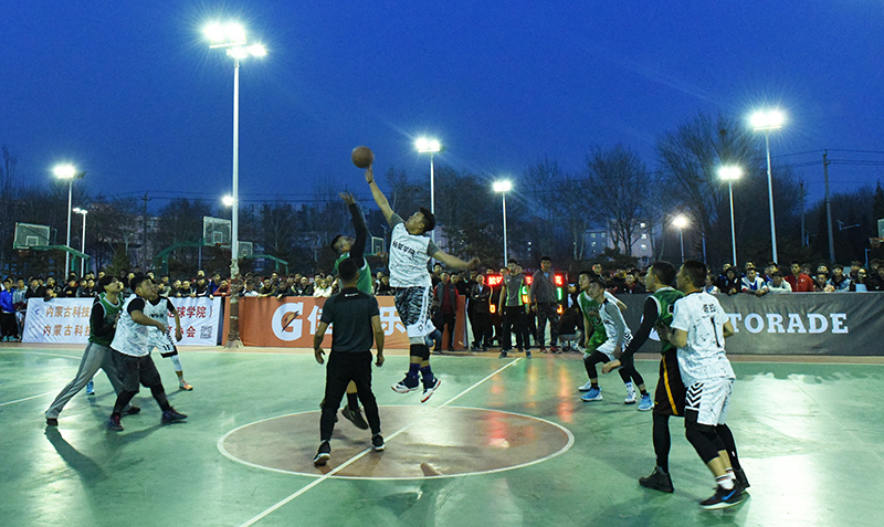 安胜利为首场比赛开球。第一场比赛为经济与管理学院对阵能源与环境学院。断球、上篮、进攻、防守,球员们以精湛的球技、默契的配合赢得现场观众的阵阵掌声。经过激烈角逐,经济与管理学院以48∶36的成绩战胜能源与环境学院,获得本次比赛的首胜。
