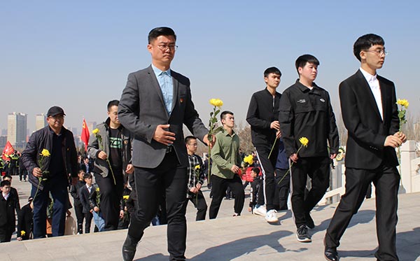青山埋忠骨,丰碑筑英魂。44日,学校各学院、大学生自律委员会、国旗护卫队、砺剑社团、军事爱好者协会等师生代表100余人在包头市革命烈士陵园开展缅怀革命先烈活动。