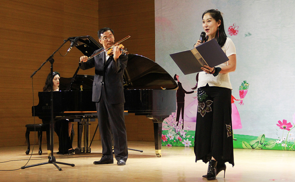 艺术与设计学院李倩、王蕾、王立群、刘洋等11位师生激情演绎包头市著名词作家郝吉林、郑少如作词的歌曲《我的包头》、《紫丁香》和84岁高龄的刘裕老先生的新作《教师之歌》,真情流露,赢得场内观众阵阵掌声。