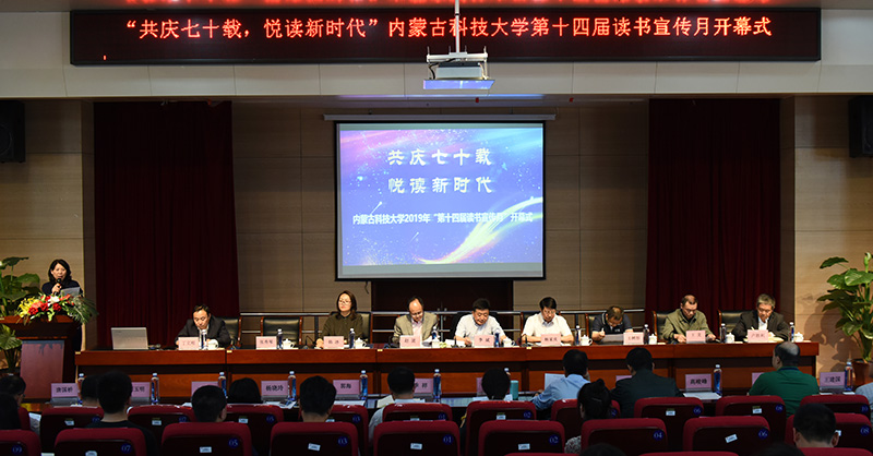 为深入贯彻落实党的十九大精神,弘扬优秀读书传统,加强学校学风建设。4月23日,以“共庆七十载,悦读新时代”为主题的金沙990活动大厅第十四届读书宣传月开幕式在校图书馆B201学术报告厅举行,副校长李斌,党委委员、宣传部部长杨家庆,包头师范学院王龙教授,校团委、学生工作部、图书馆、各学院相关负责人及200余名师生代表出席本次开幕式。
