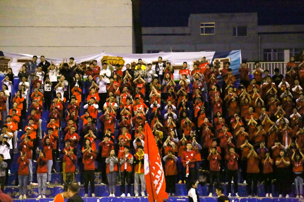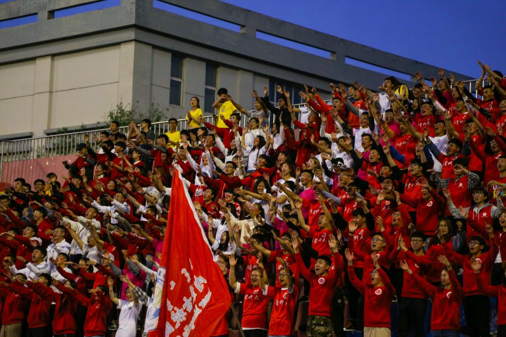 鼓声响起,现场观众手持应援棒,高喊“内科大欢迎您”,热烈的呐喊声回荡全场。