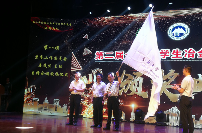 闭幕式上,全国大学生冶金科技竞赛工作委员会授予金沙官网第三届全国大学生冶金科技竞赛的承办权,并完成了会旗交接仪式。