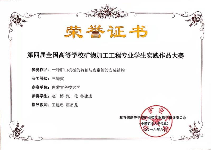 8月3日至6日,第四届全国高等学校矿物加工工程专业学生实践作品大赛在贵州大学举行,金沙990活动大厅矿业与煤炭学院选送的作品获科技论文类作品二等奖1项,三等奖3项,为历届最好成绩。