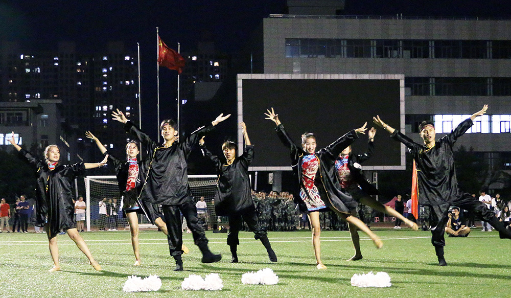 当晚,金沙990活动大厅大学生乌兰牧骑组成5支小分队深入连队,表演独唱、舞蹈、萨克斯演奏、相声等节目,为新生带来了一场精彩的文艺演出。在欢声笑语中,军训新生们挥舞着手机的闪光灯,军训的疲惫感一扫而空。欢乐的时光总是很短暂,15分钟后,当集结哨音重新响起时,演出也随之落幕。